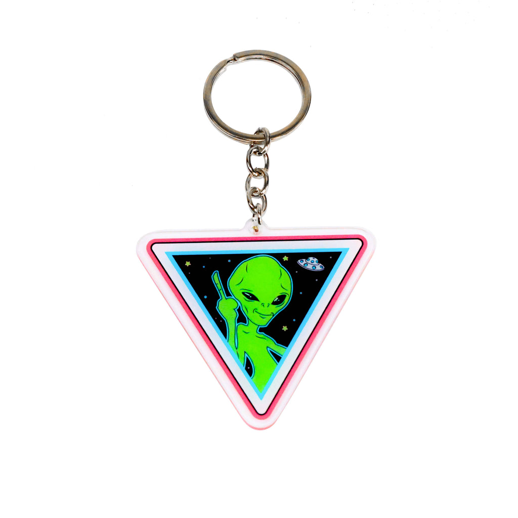The retro green Alien keychain represents the classic extraterrestrial from vintage sci-fi